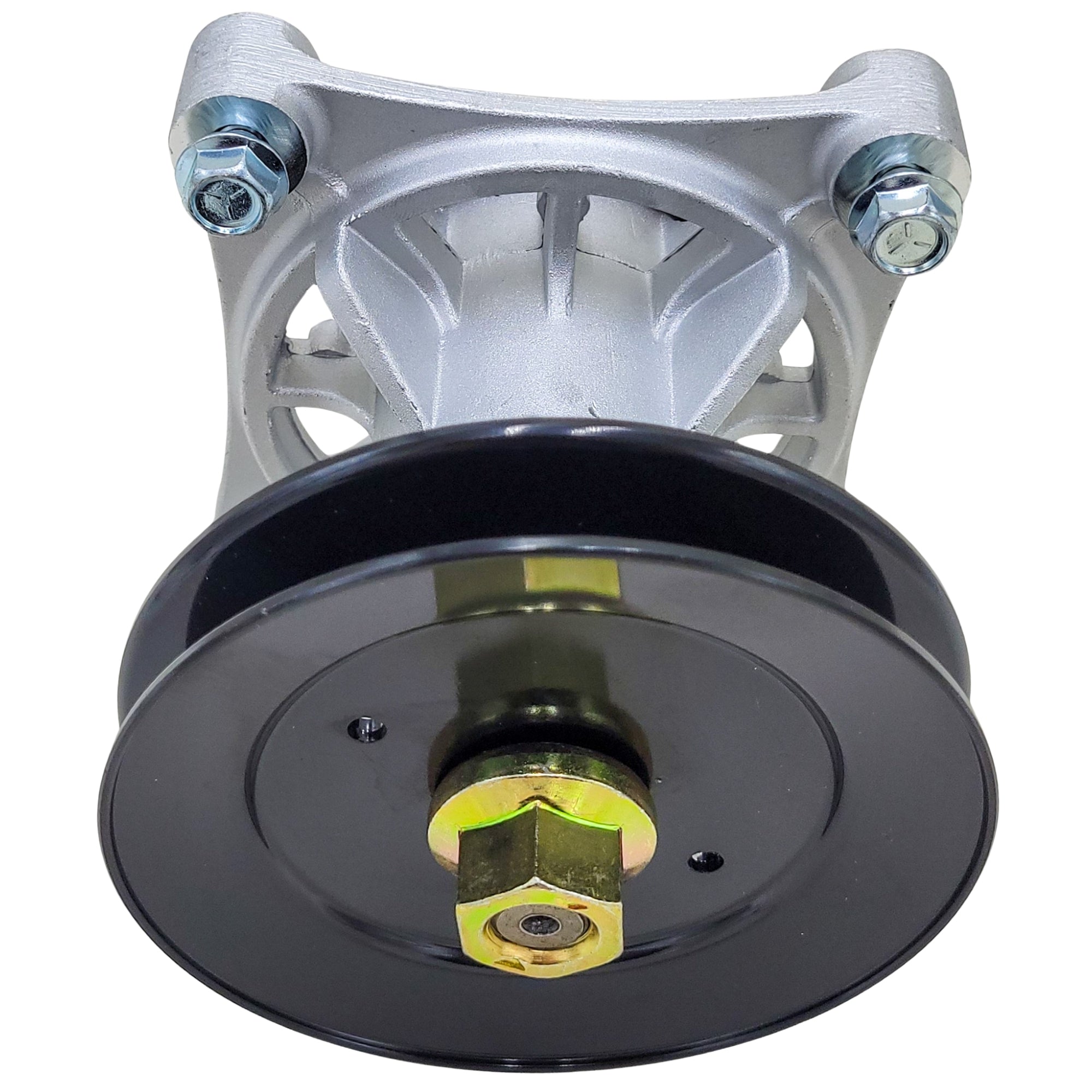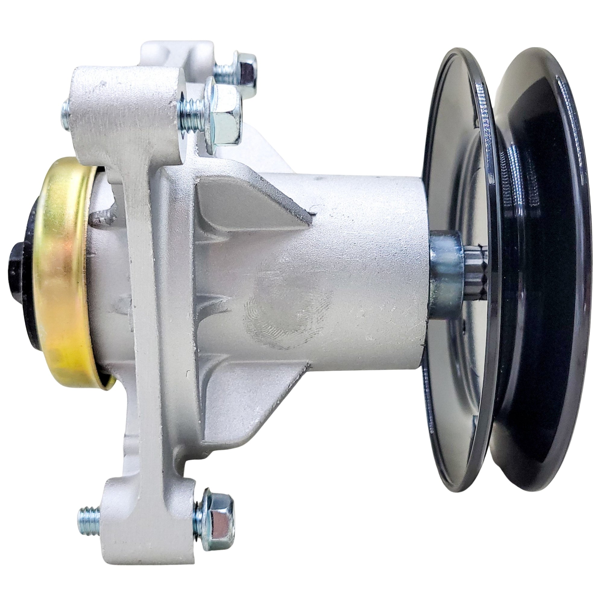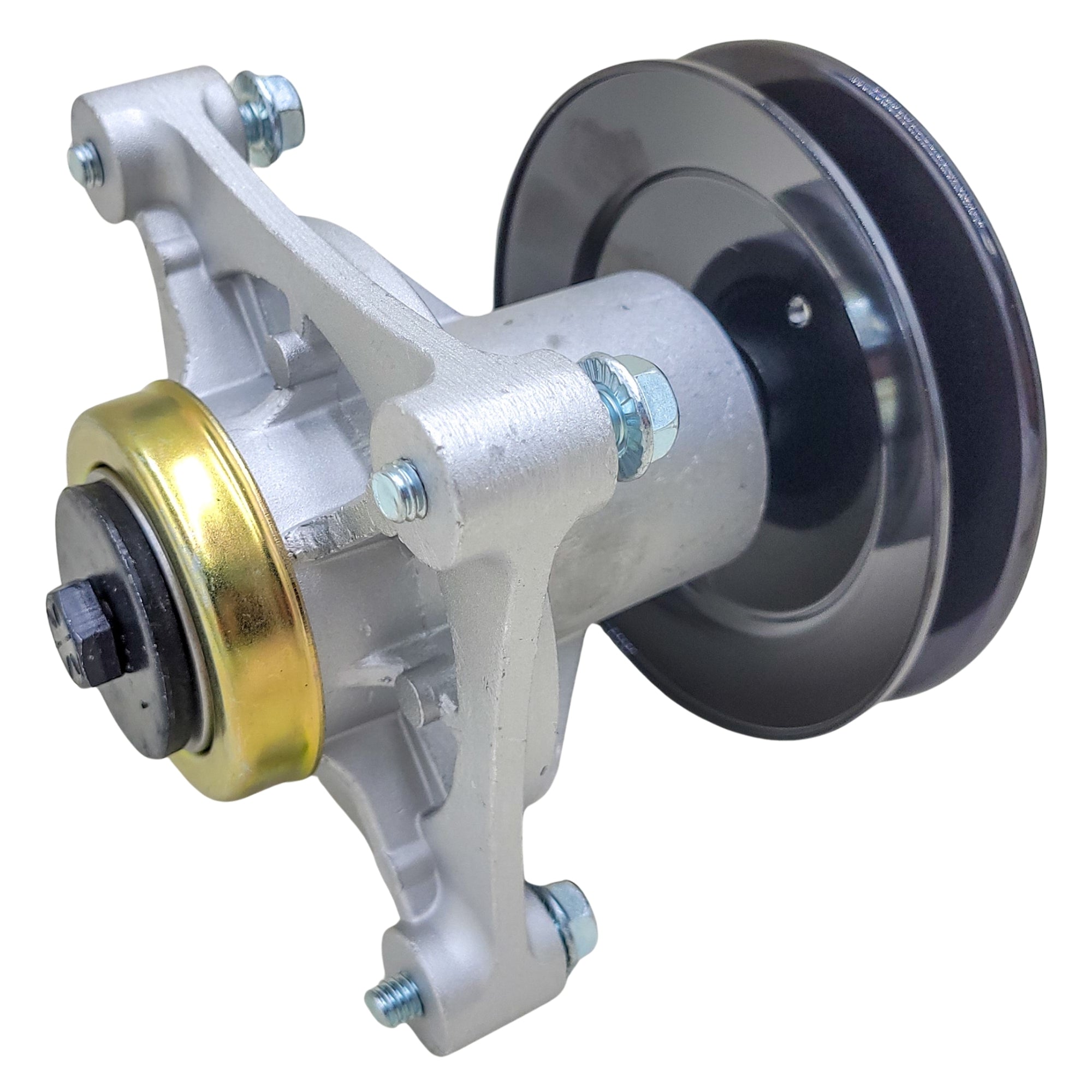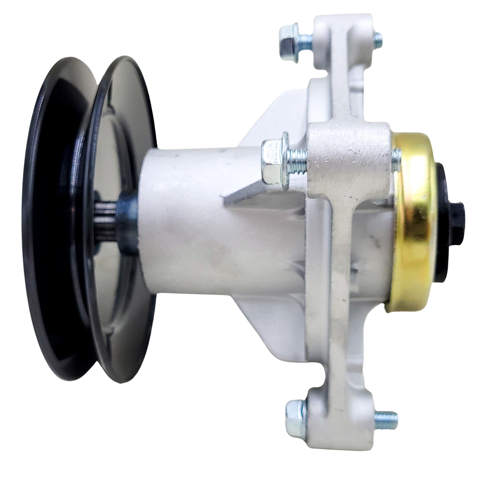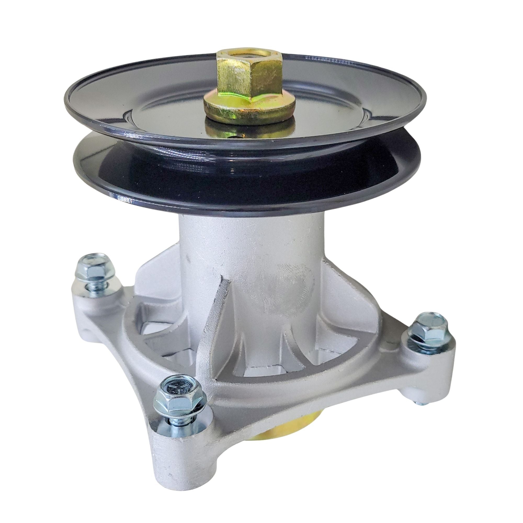 Replacement spindle assembly for Hustler/Excel P/N 604214. The mounting bolts, blade bolt and washer, *pulley, and pulley nut are included with this assembly.