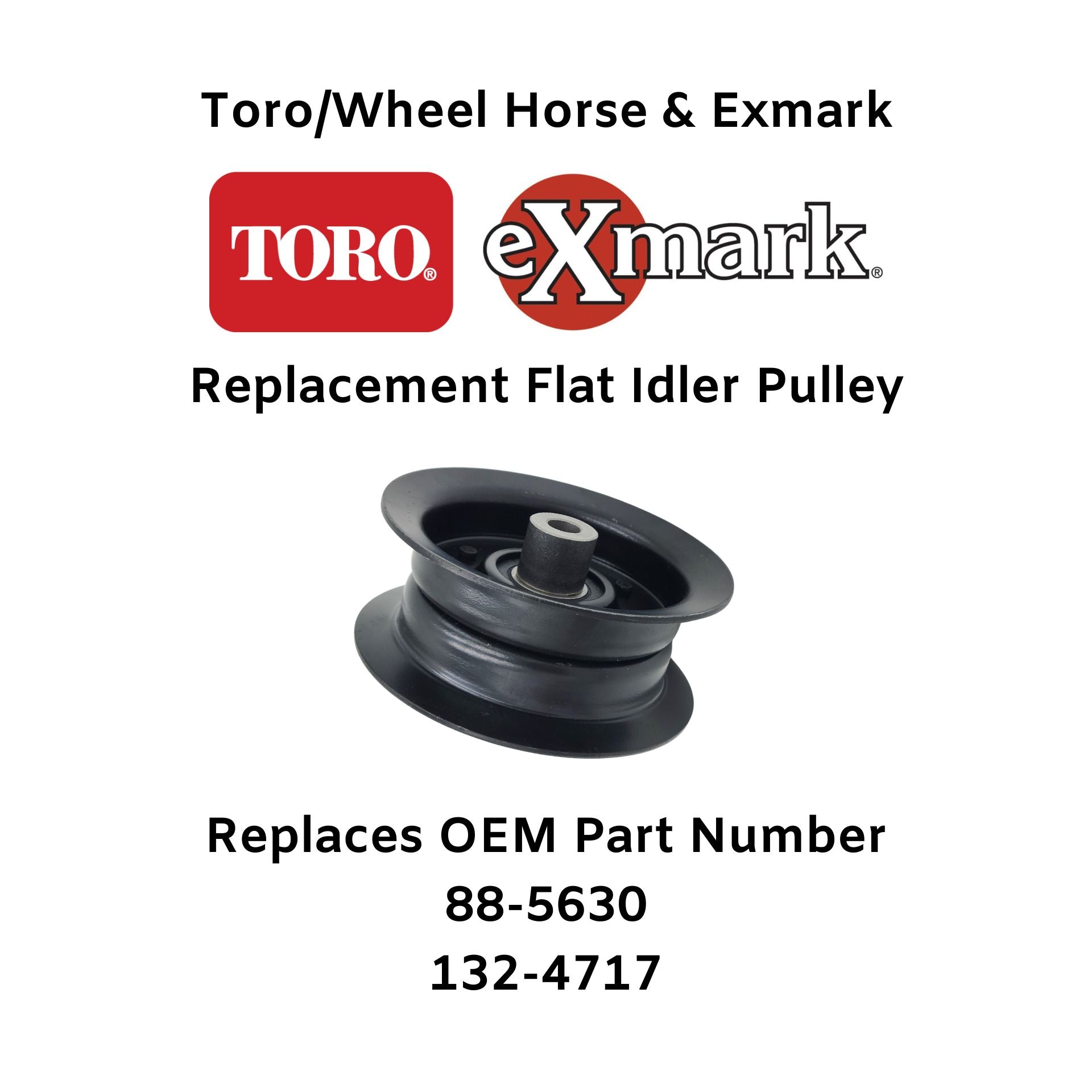 Pulley replaces Exmark and Toro (Toro/Wheel Horse) Part Number 88-5630. Used on some Toro TimeCutter mower decks along with other mowers made by Toro, Toro/Wheel Horse, and Exmark. 132-4717 is the old part number superseded to 88-5630.
