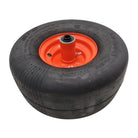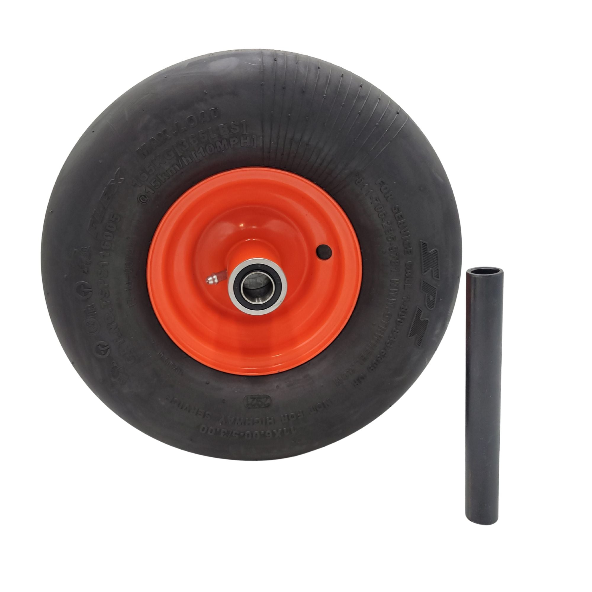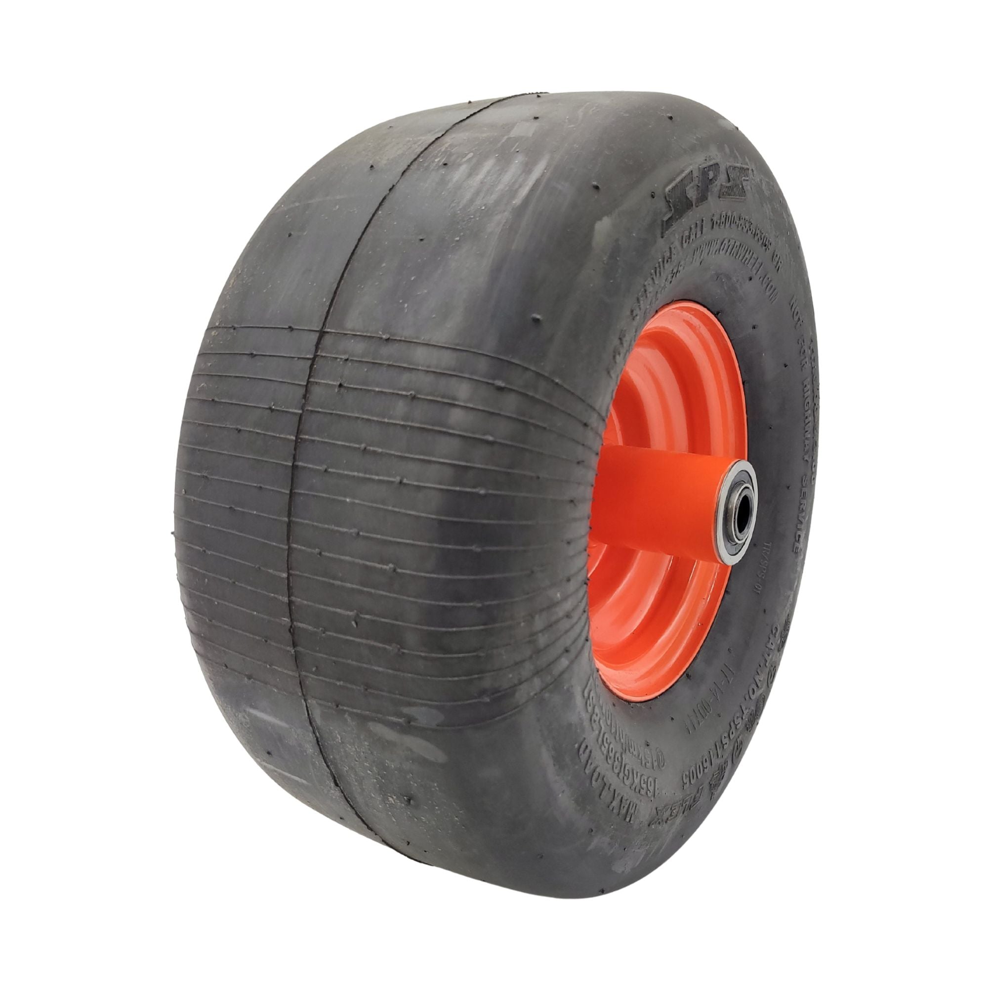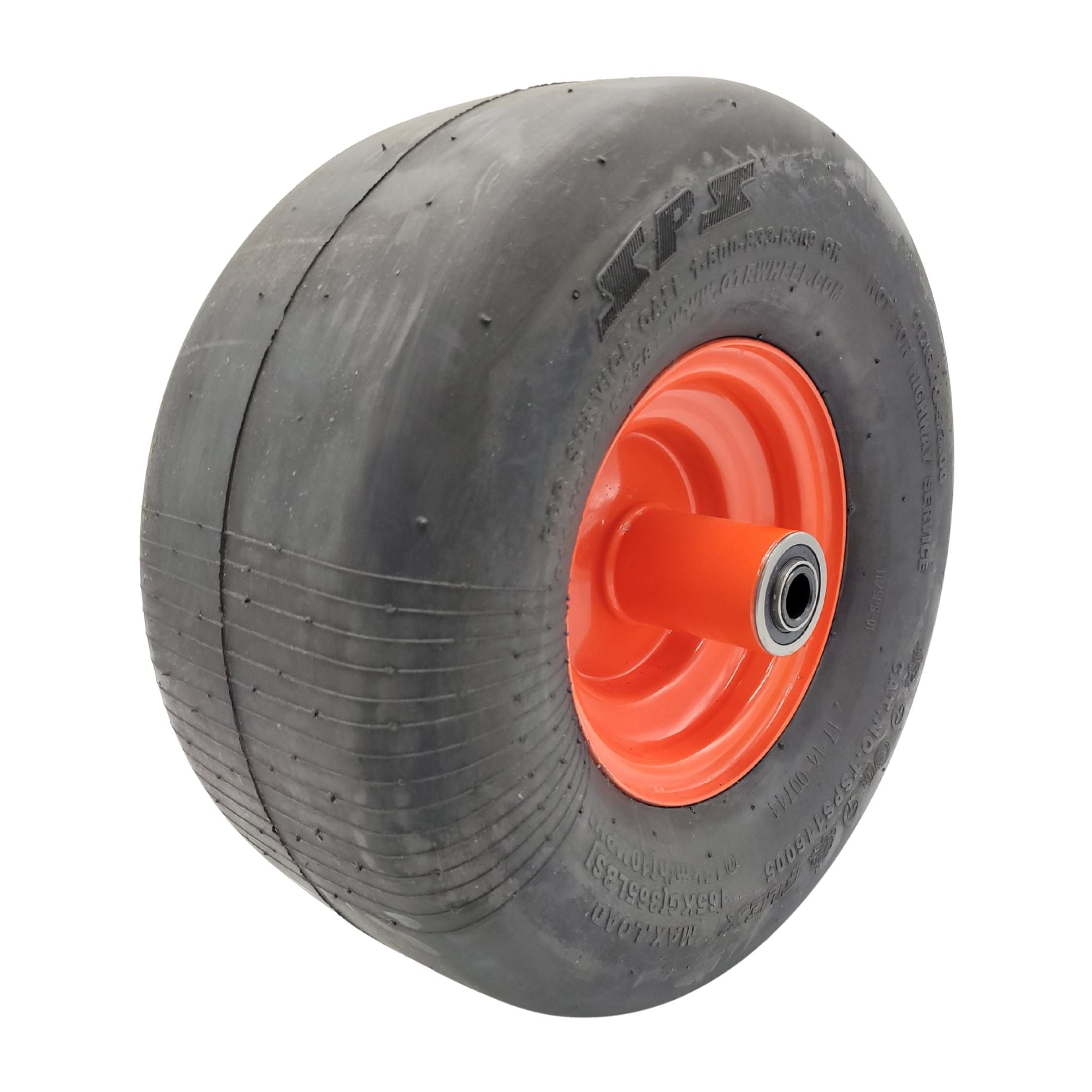 11x6.00-5 flat-free smooth tread tire with the wheel painted Bad Boy orange for most 2011-2019 Bad Boy MZ Magnum models.