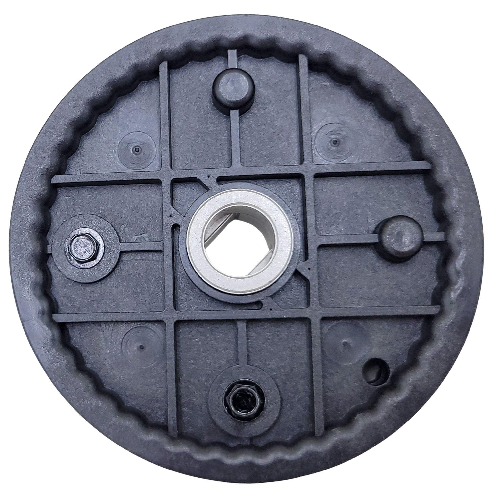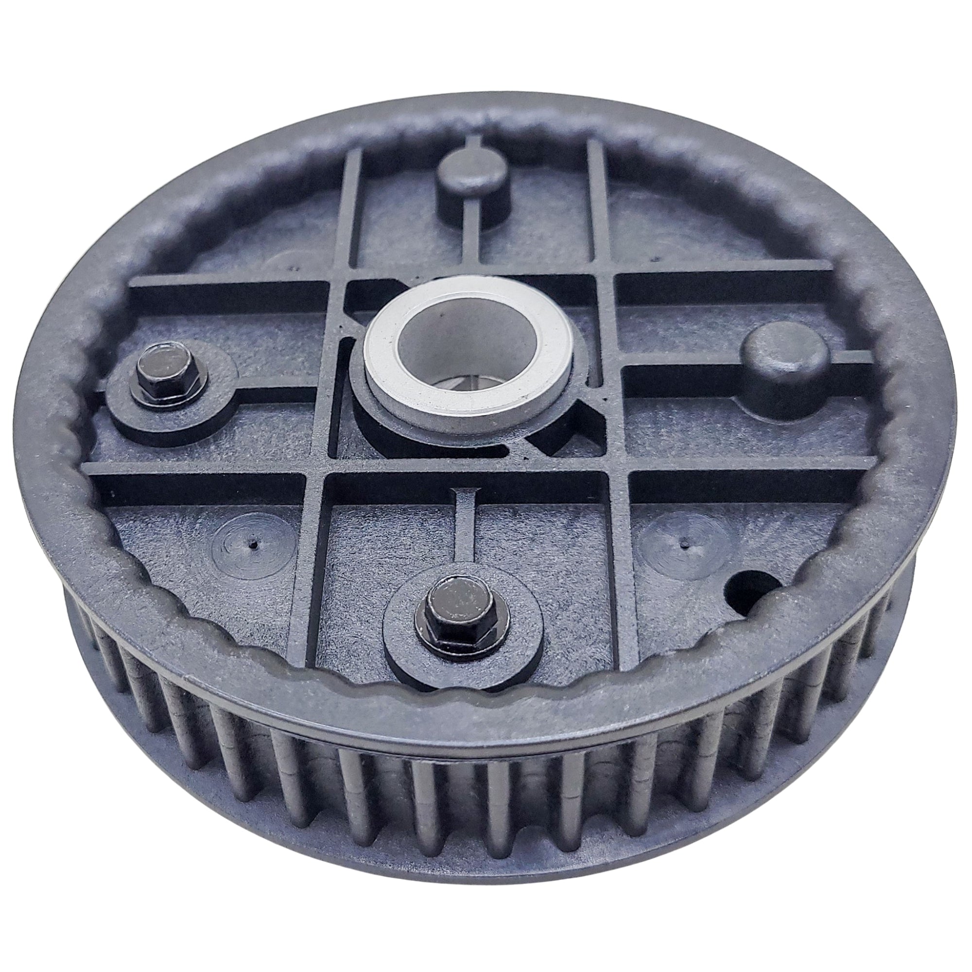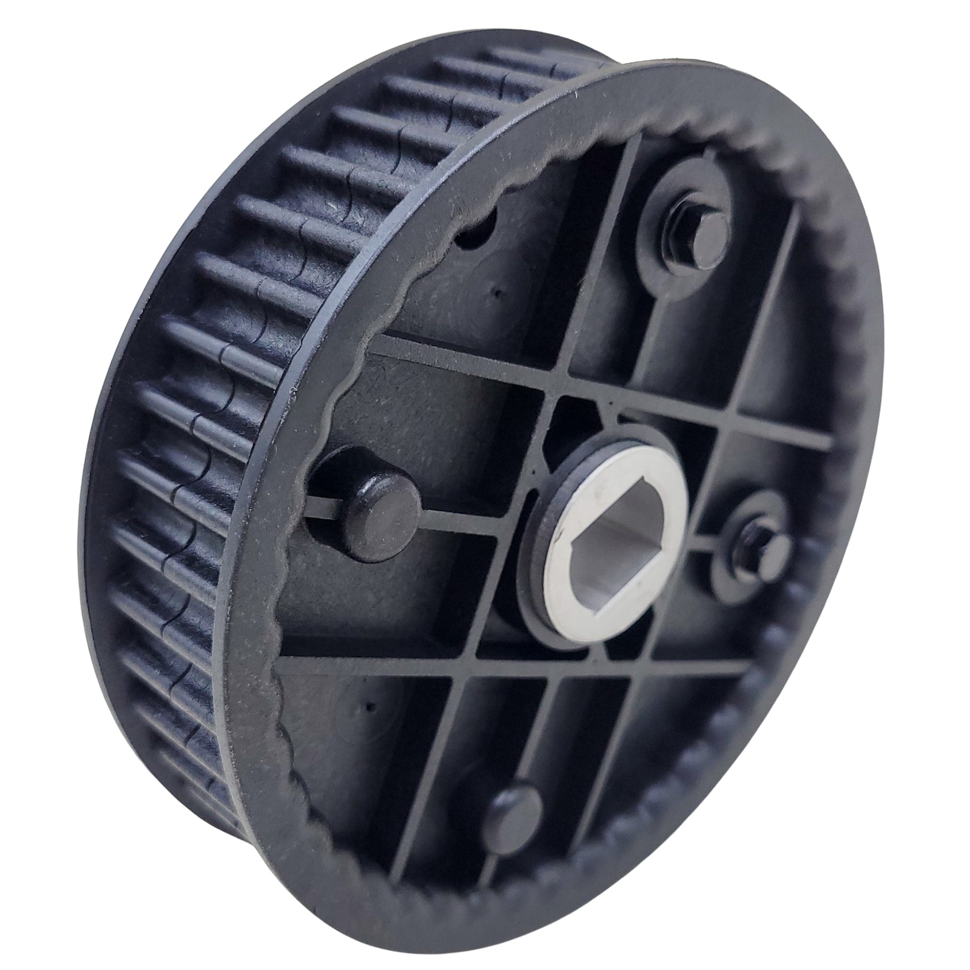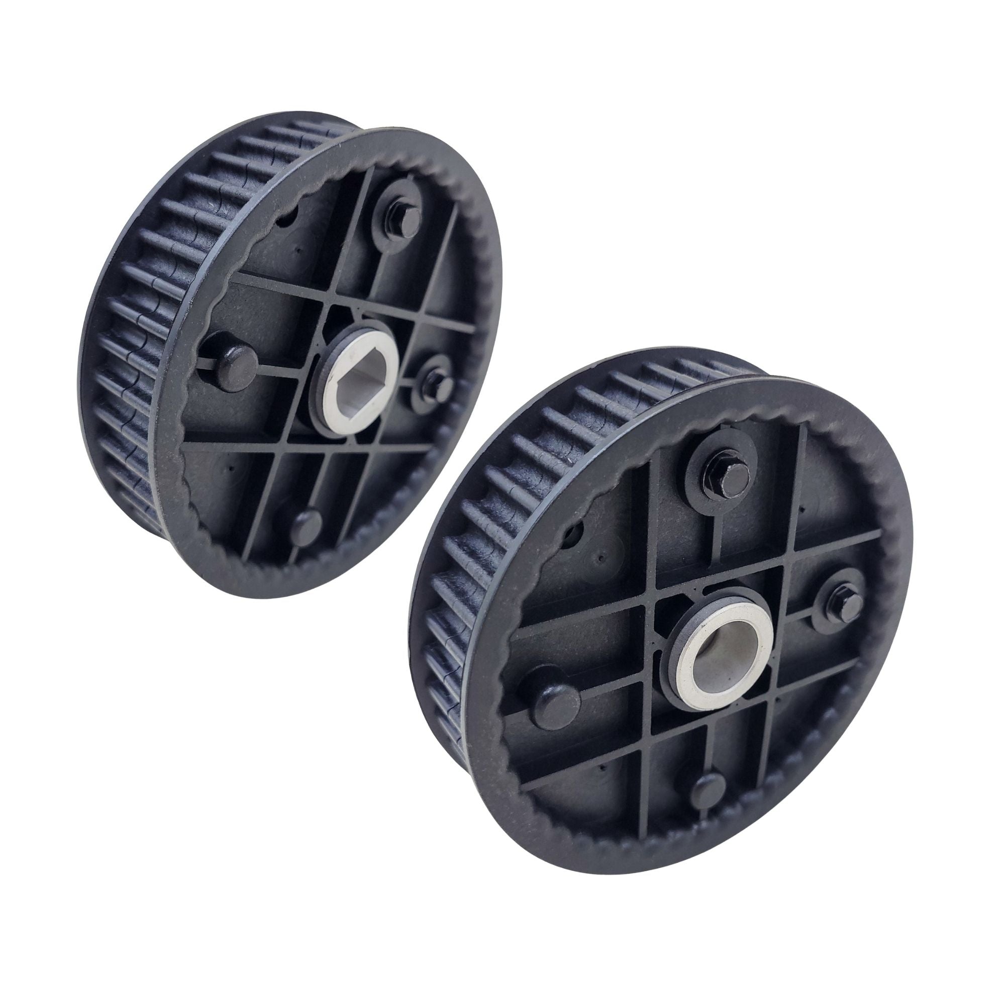 These are the pulleys that the synchronous timing belt wraps around on the deck.