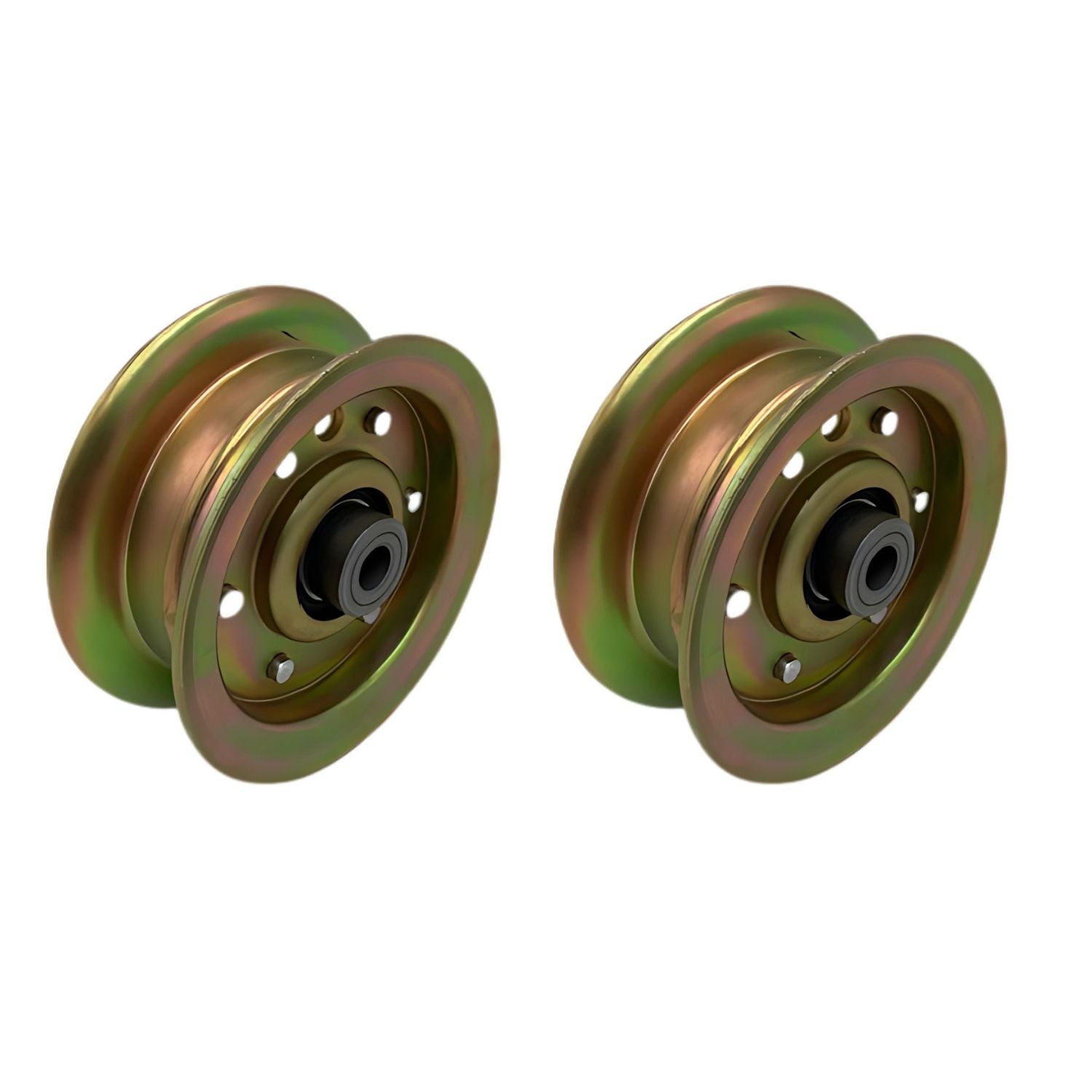 2 Pack of Flat idler pulleys replaces part number 532177968 and 532193197. This is used on Husqvarna, Craftsman and other AYP brand lawn mowers.