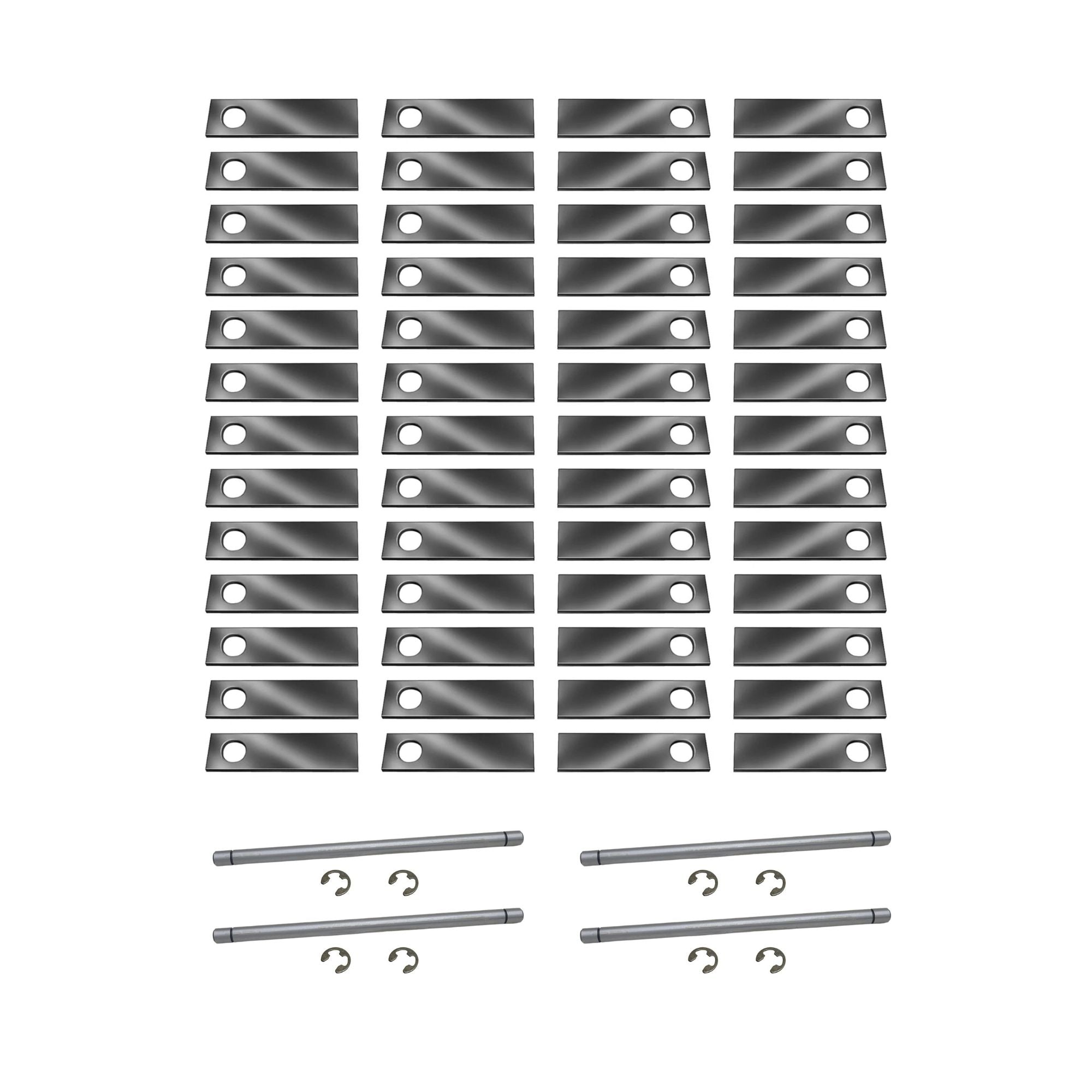 Set of 52 blades, 4 shafts, and 8 clips for Bluebird, Husqvarna, RedMax, AYP/Electrolux, Jonsered, Dixon, and Poulan dethatchers.
