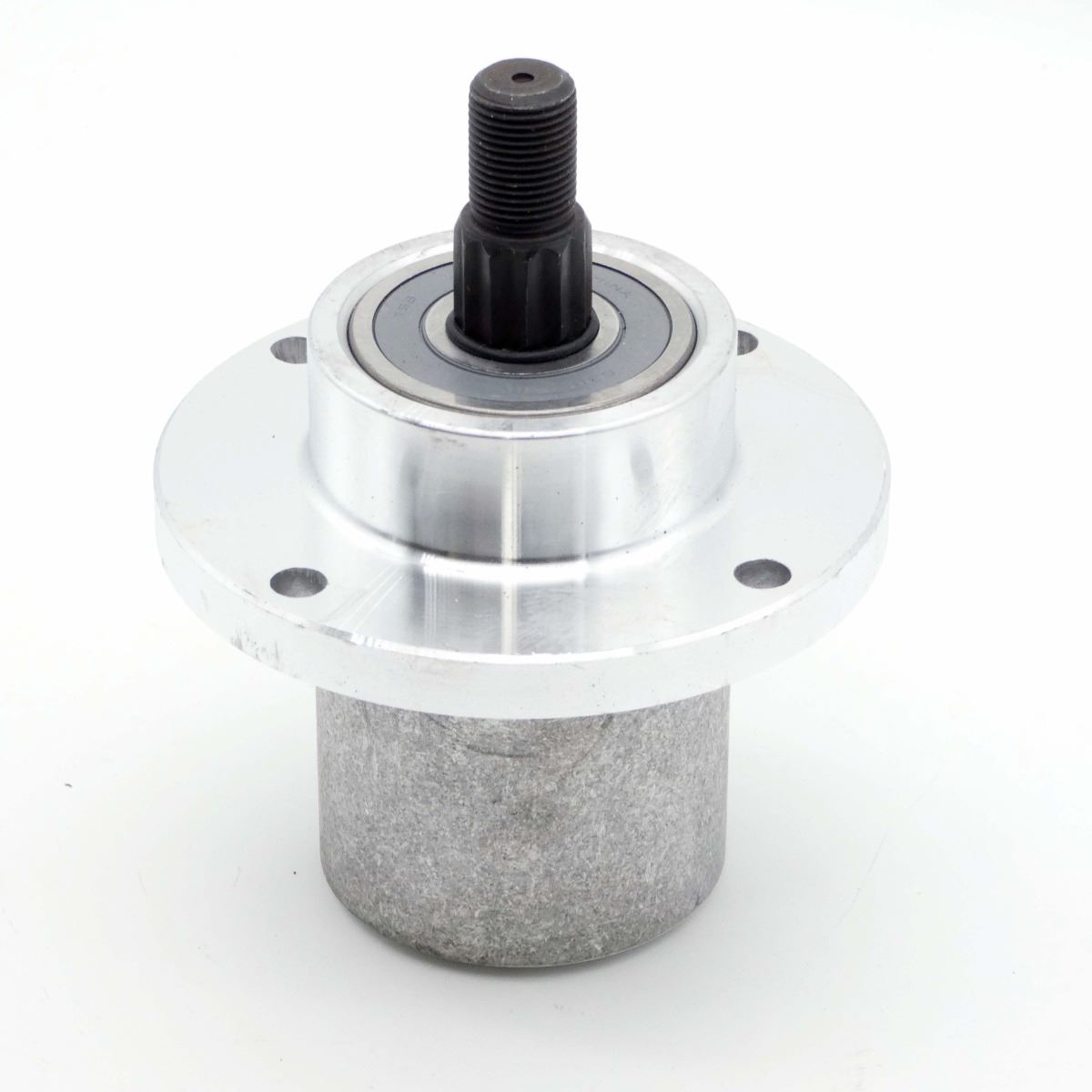 Replacement spindle used on select WorldLawn and Encore mower models using part number 583106.