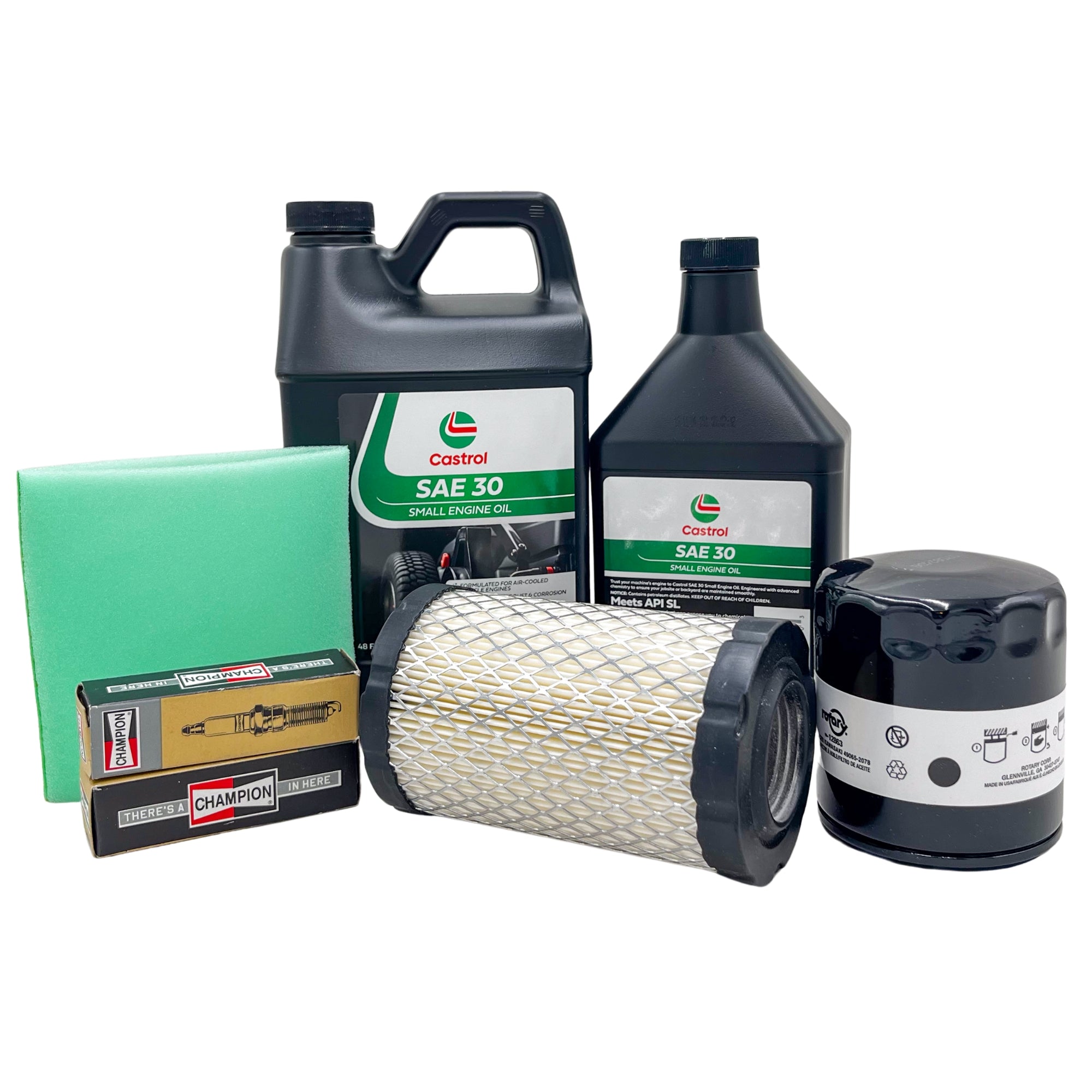 Engine Maintenance Kit for Briggs & Stratton fits Twin Cylinder Intek, Power Built, and Professional 13.5 to 19.5 HP replaces 5136B. Contains 1 each Rotary item 13644 (Air Filter), 14422 (Pre Filter), 12863 (Oil Filter), 2 ea. 11220 (Spark Plug), 1 ea. 48 oz. bottle of SAE 30 (4 cycle oil), and 1 ea. 18 oz. bottle of SAE 30 (4 cycle oil).