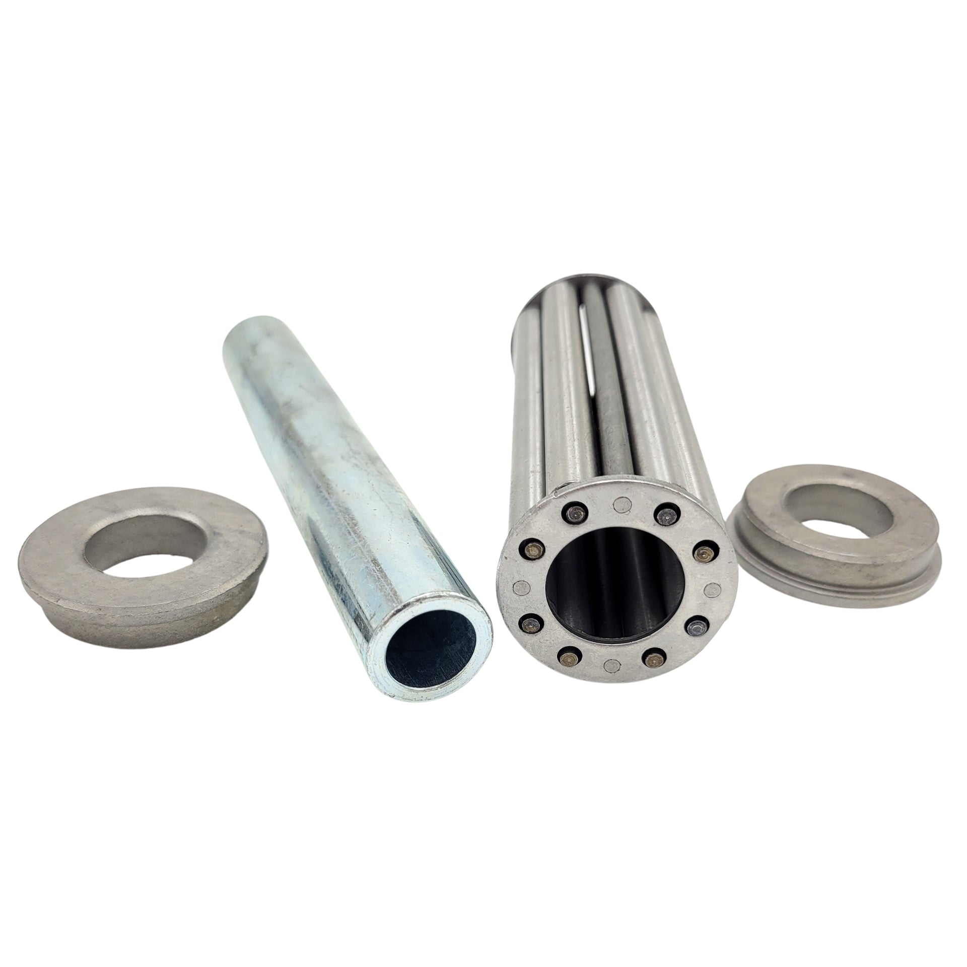 Kit contains Exmark 513809 Roller Cage Bearing With Retainer Bushing and Exmark Spanner Bushing.