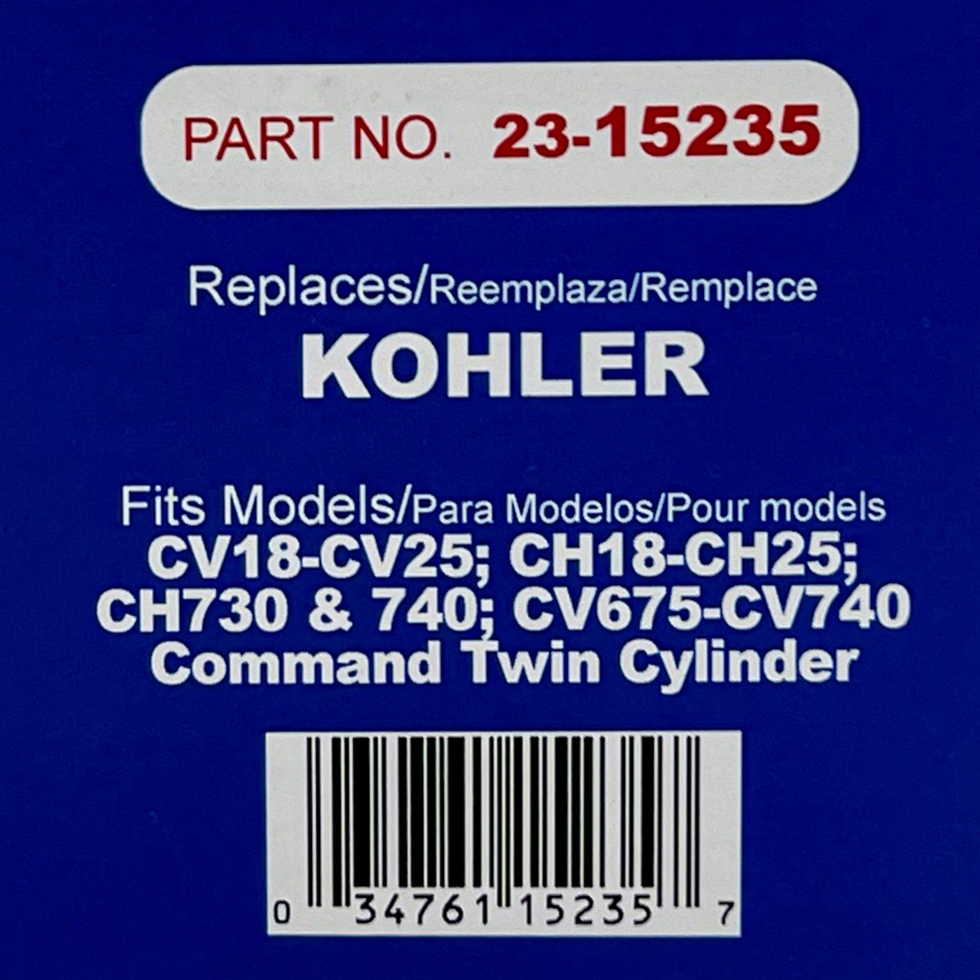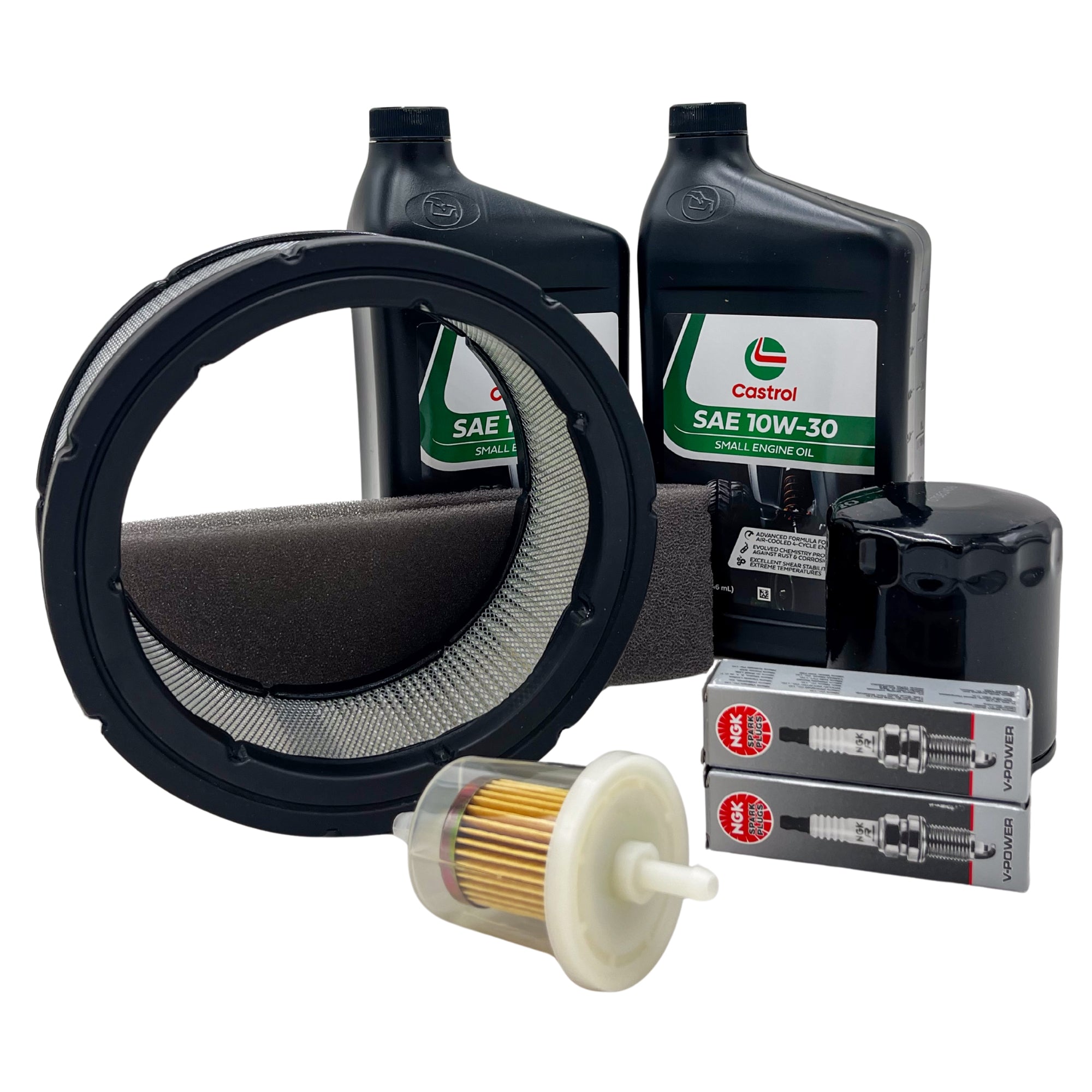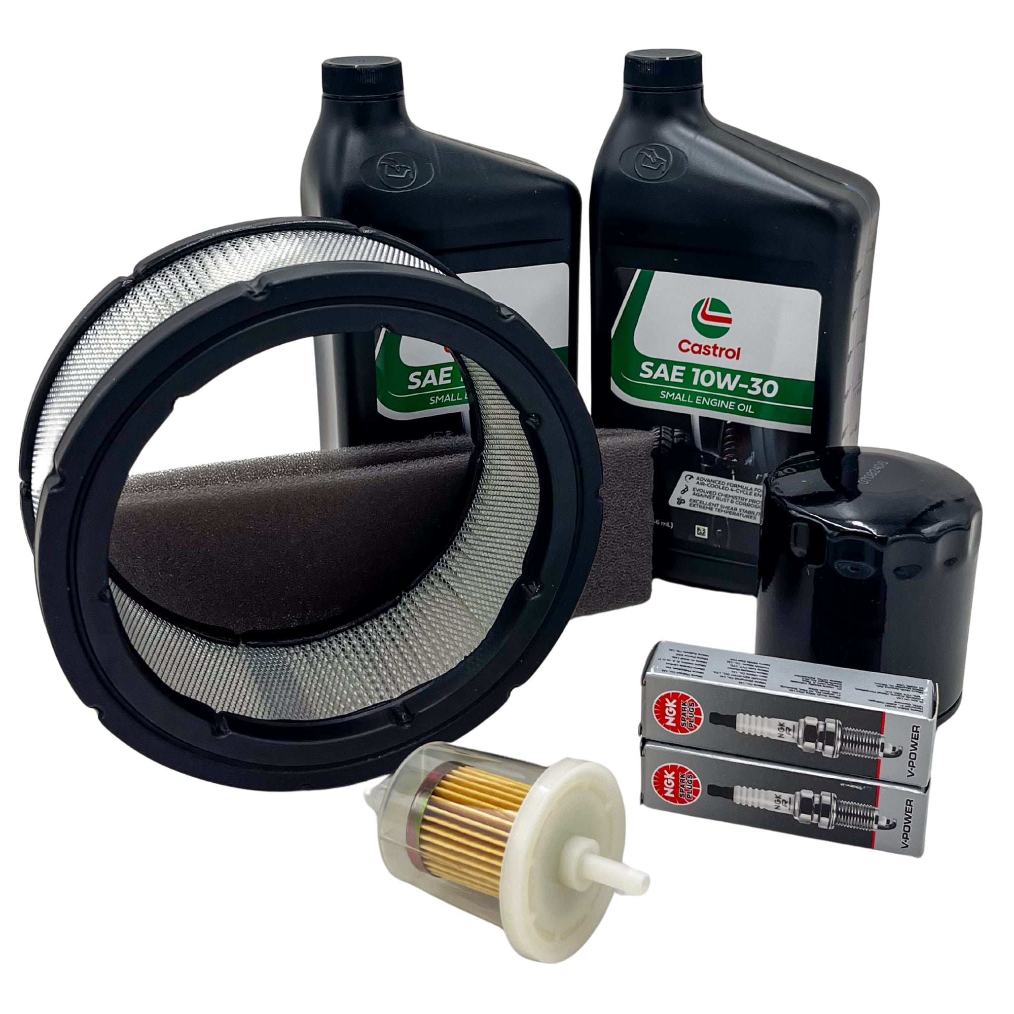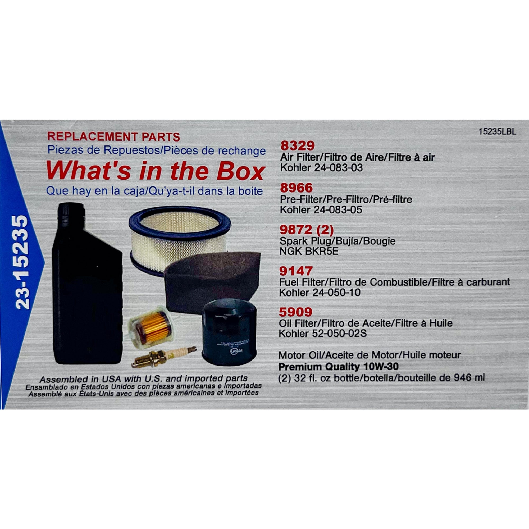 Engine Maintenance Kit replaces Kohler 24 789 02-S. Fits CV18-CV25; CH18-CH25; CH730 & 740; CV675-CV740, Command Twin Cylinder. Contains 1 each Rotary item 8329 (Air Filter), 8966 (Pre Filter), 12863 (Oil Filter), 9147 (Fuel Filter), 2 ea. Rotary item 9872 (Spark Plug) and 2 quarts of 10W-30 (4 cycle oil).