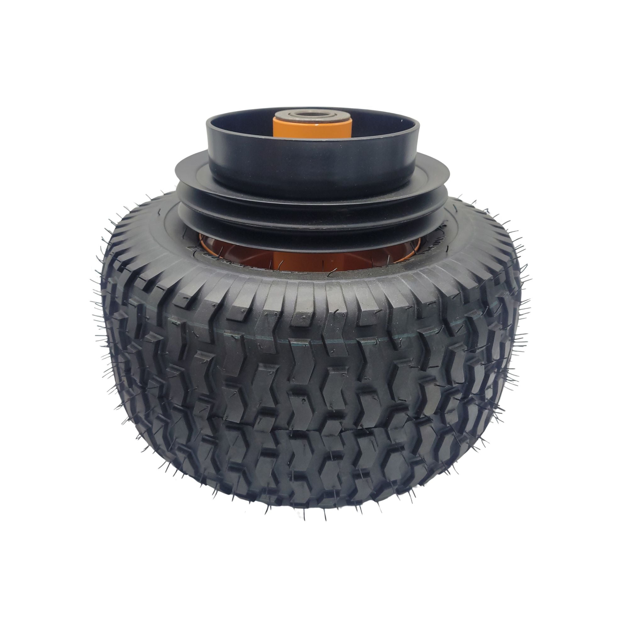 13x6.50-6 drive wheel assembly with one-piece rim with hub and bearings.  Includes 8" pulleys and 6" brake drum.