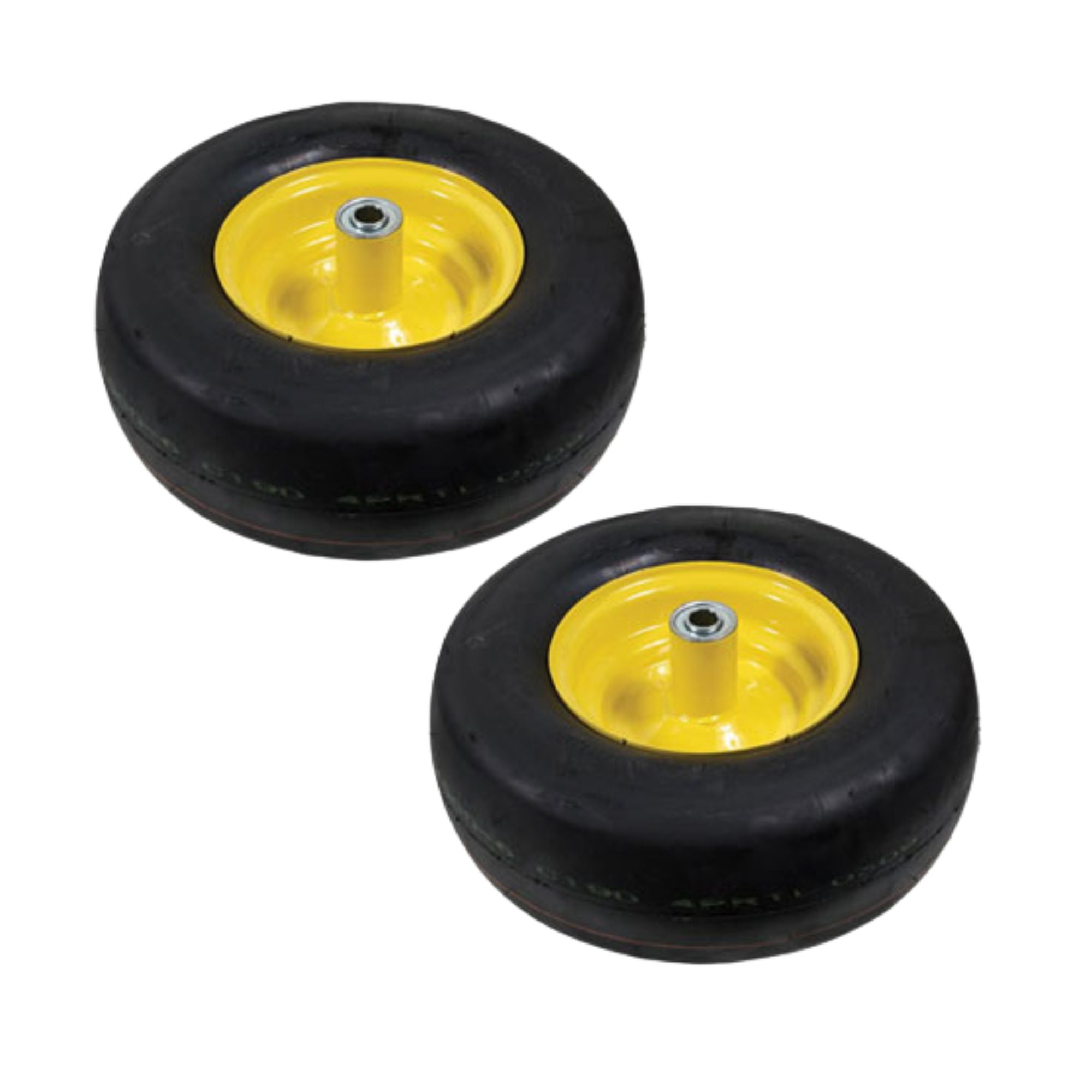 Set of 2 - 13x5.00-6 pneumatic, air-filled wheel & tire assemblies for specific John Deere models. Sold as a set of 2 wheel and tire assemblies.