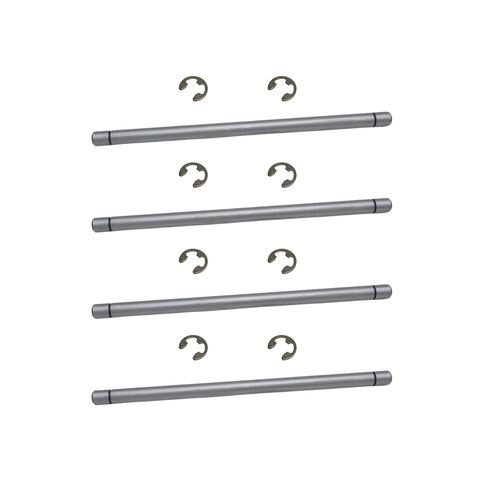Set of 4 shafts and 8 clips for Bluebird, Husqvarna, RedMax, AYP/Electrolux, Jonsered, Dixon, and Poulan dethatchers.