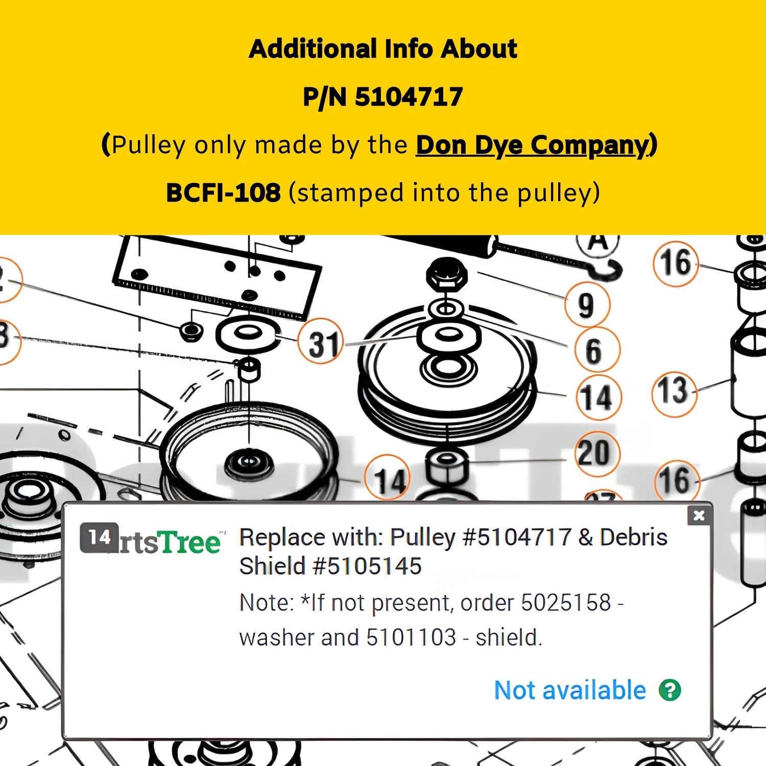 - 5104717 (Pulley Only made by the Don Dye Company with BCFI-108 stamped into the pulley - DOES NOT Replace 5104717YP)