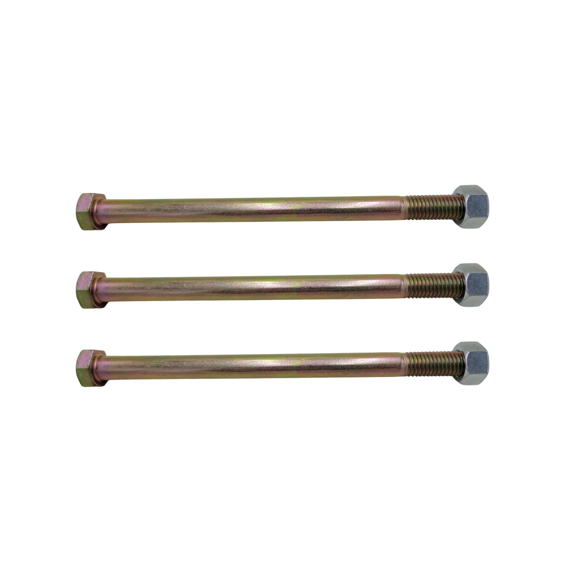 Sold as a set of 3 bolts and 3 nuts for Scag spindle assembly part number 461663 that has the 'through-bolt' design. Three 5/8-11 X 9-1/2" Grade 5 bolts and three 5/8-11 nuts.