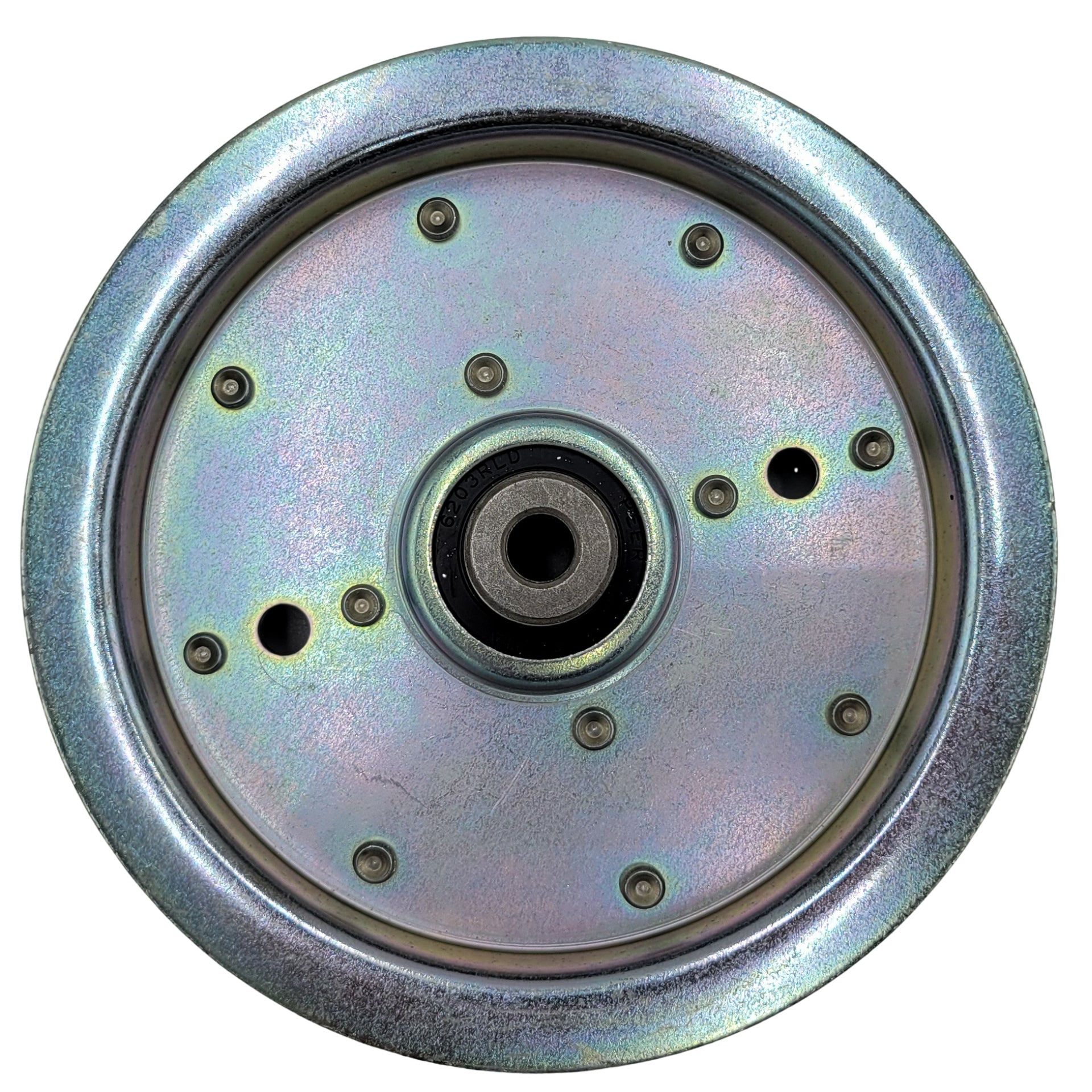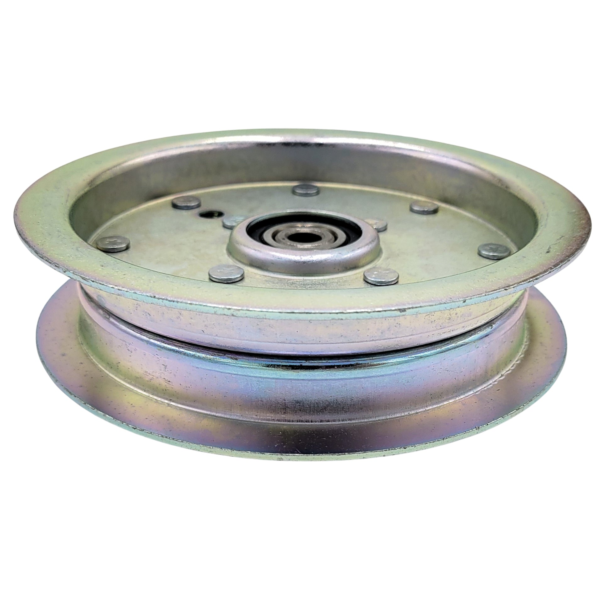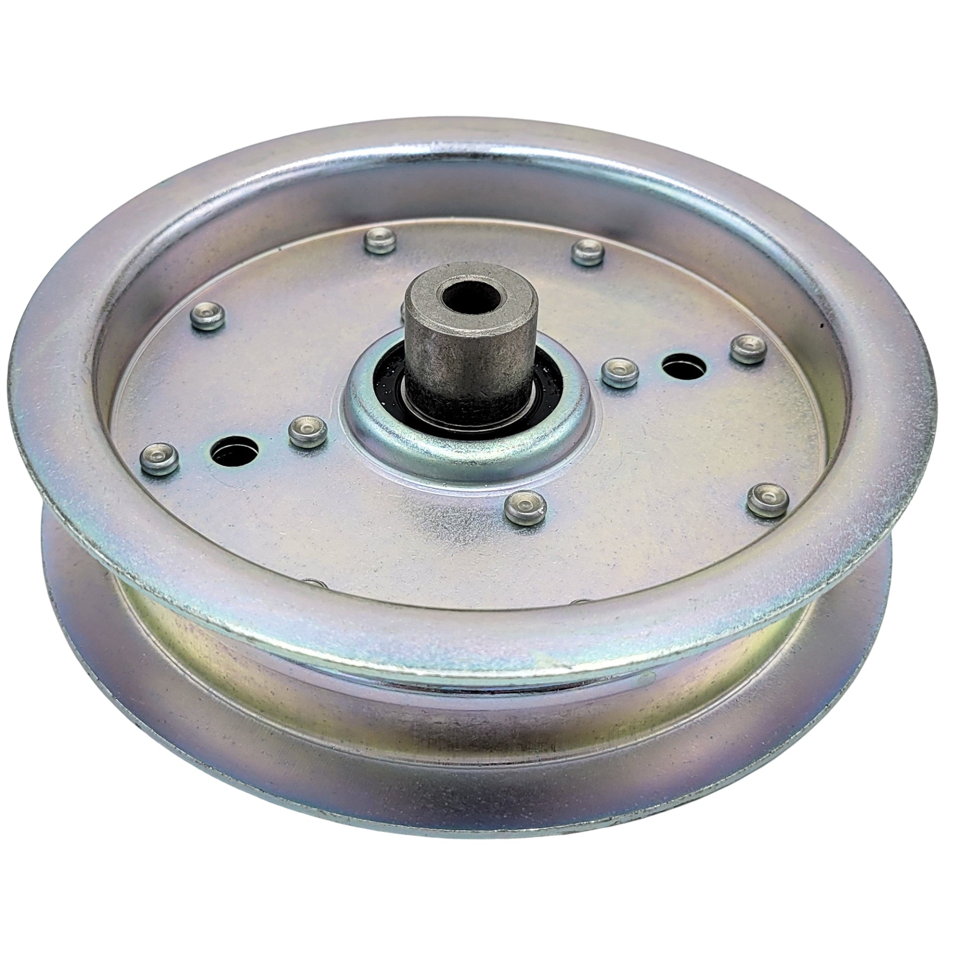 Replacement idler pulley for specific models of Scag and Great Dane lawn mowers.